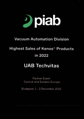 During the meeting, our company was awarded in recognition of successfully fulfilling Piab requirements and the highest sales of Kenos® products: