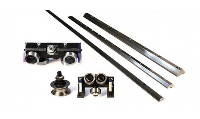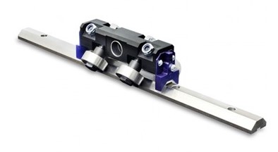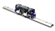Prismatic rails with bearings and induction hardened v-shaped raceways.